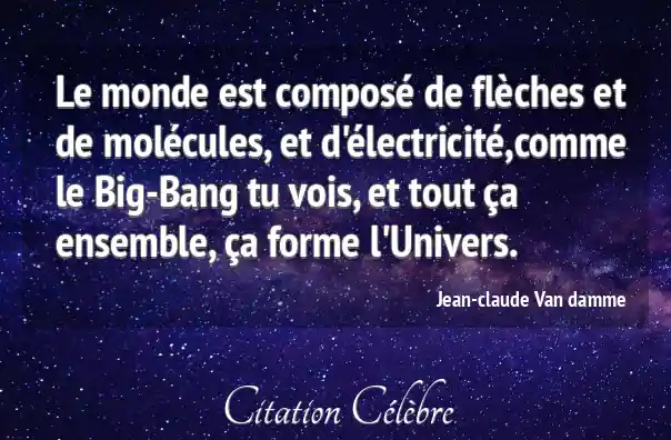 Le monde est composé de flèches et de molécules, et d'électricité,comme le Big-Bang tu vois, et tout ça ensemble, ça forme l'Univers.
