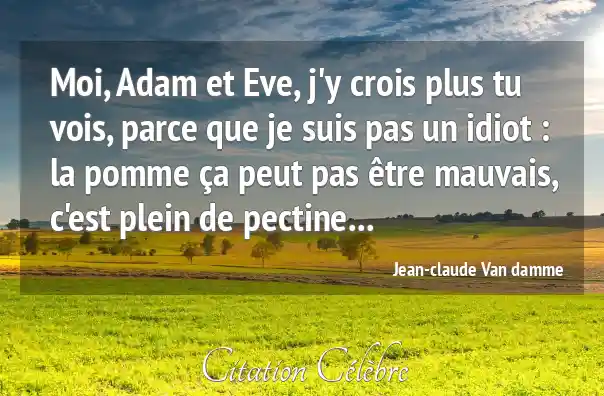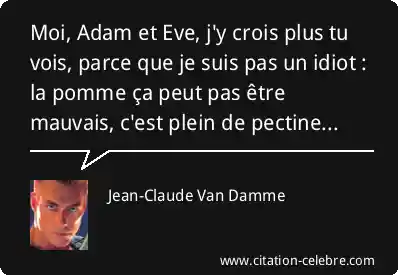 Moi, Adam et Eve, j'y crois plus tu vois, parce que je suis pas un idiot : la pomme ça peut pas être mauvais, c'est plein de pectine...