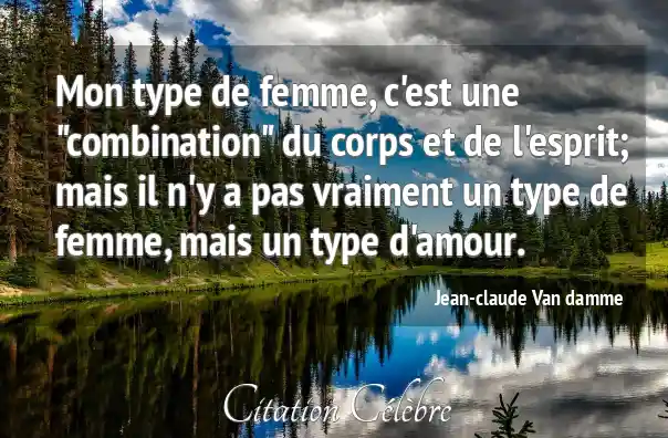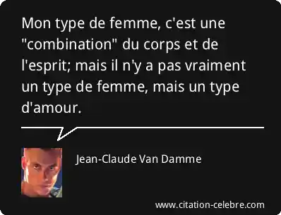Mon type de femme, c'est une "combination" du corps et de l'esprit; mais il n'y a pas vraiment un type de femme, mais un type d'amour.