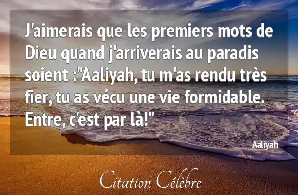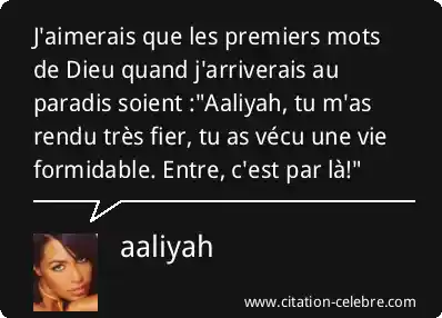 J'aimerais que les premiers mots de Dieu quand j'arriverais au paradis soient :"Aaliyah, tu m'as rendu très fier, tu as vécu une vie formidable. Entre, c'est par là!"