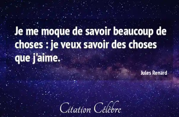 Je me moque de savoir beaucoup de choses : je veux savoir des choses que j'aime.