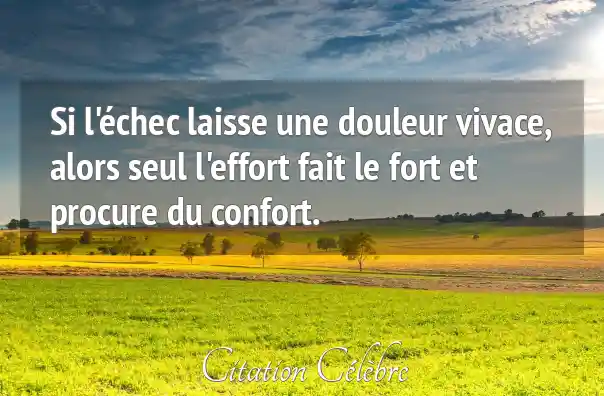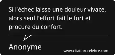 Si l'échec laisse une douleur vivace, alors seul l'effort fait le fort et procure du confort.