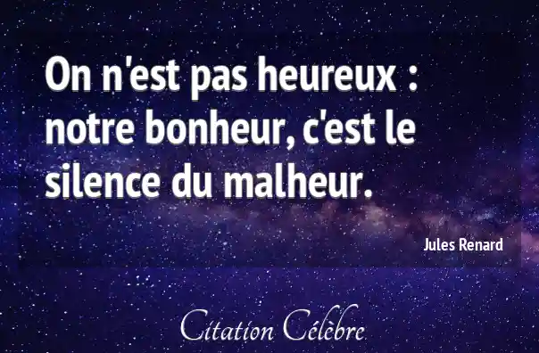 On n'est pas heureux : notre bonheur, c'est le silence du malheur.