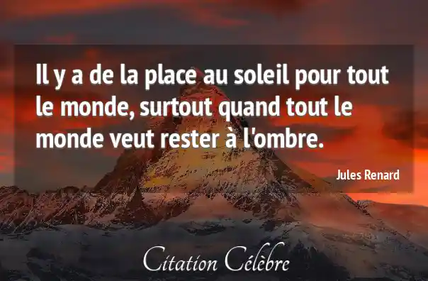 Il y a de la place au soleil pour tout le monde, surtout quand tout le monde veut rester à l'ombre.