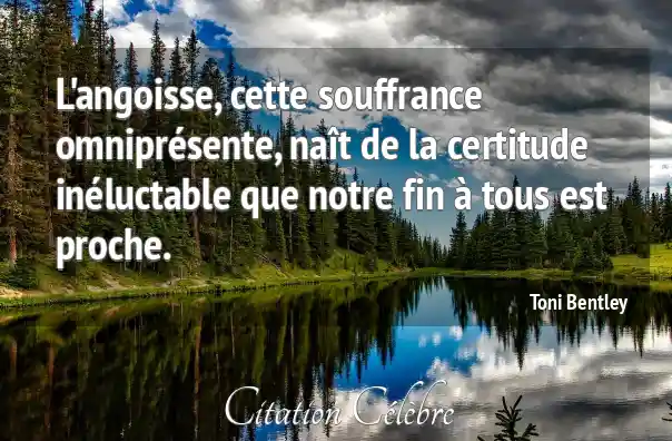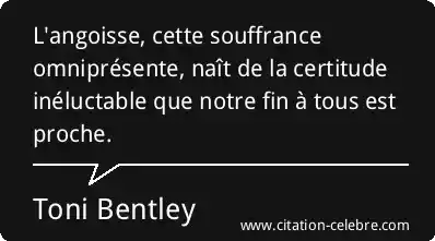 Citation Toni Bentley fin : L'angoisse, cette souffrance omniprésente, naît de la certitude inéluctable que...