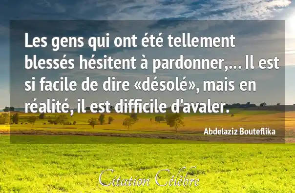 Les gens qui ont été tellement blessés hésitent à pardonner,... Il est si facile de dire «désolé», mais en réalité, il est difficile d'avaler.