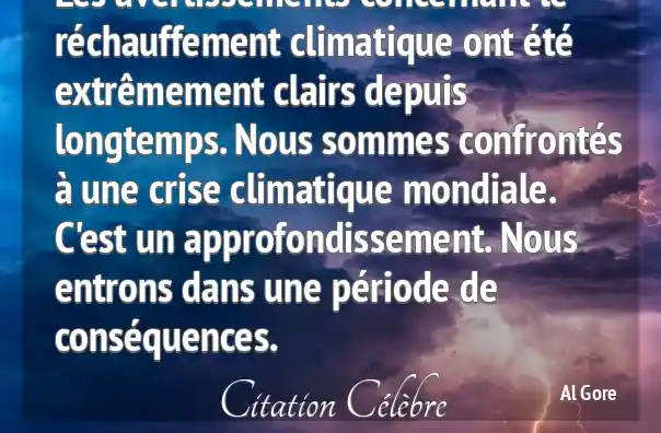 Les avertissements concernant le réchauffement climatique ont été extrêmement clairs depuis longtemps. Nous sommes confrontés à une crise climatique mondiale. C'est un approfondissement. Nous entrons dans une période de conséquences.