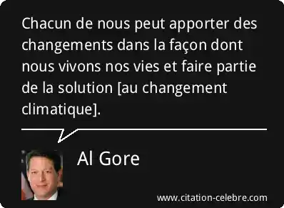 Chacun de nous peut apporter des changements dans la façon dont nous vivons nos vies et faire partie de la solution [au changement climatique].