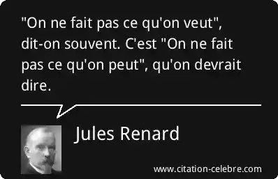 "On ne fait pas ce qu'on veut", dit-on souvent. C'est "On ne fait pas ce qu'on peut", qu'on devrait dire.