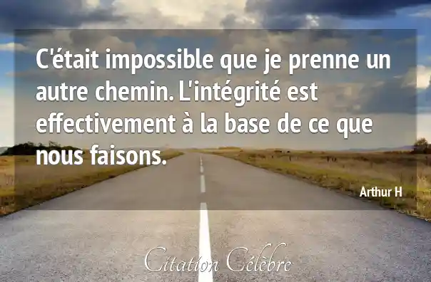 C'était impossible que je prenne un autre chemin. L'intégrité est effectivement à la base de ce que nous faisons.