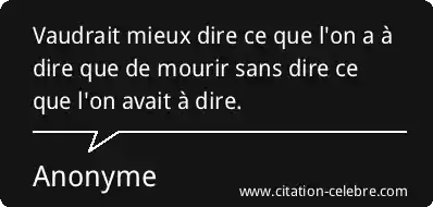 Vaudrait mieux dire ce que l'on a à dire que de mourir sans dire ce que l'on avait à dire.