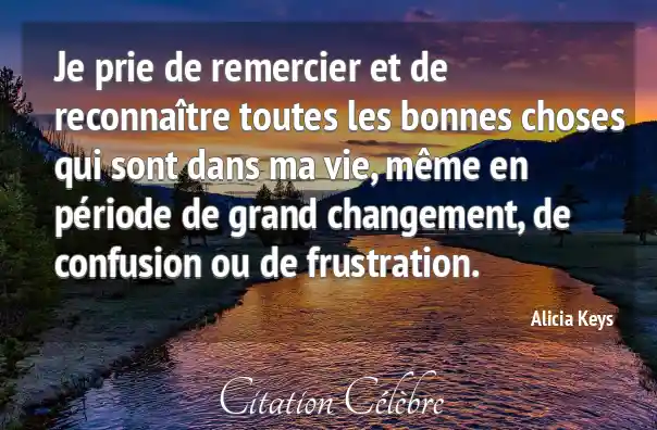 Je prie de remercier et de reconnaître toutes les bonnes choses qui sont dans ma vie, même en période de grand changement, de confusion ou de frustration.
