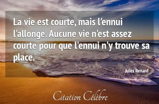 La vie est courte, mais l'ennui l'allonge. Aucune vie n'est assez courte pour que l'ennui n'y trouve sa place.