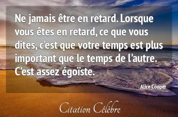 Ne jamais être en retard. Lorsque vous êtes en retard, ce que vous dites, c'est que votre temps est plus important que le temps de l'autre. C'est assez égoïste.