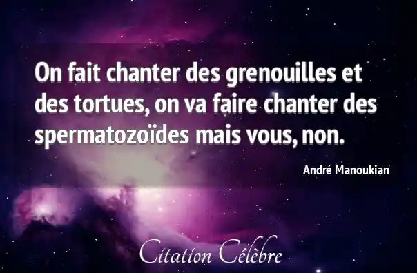 On fait chanter des grenouilles et des tortues, on va faire chanter des spermatozoïdes mais vous, non.