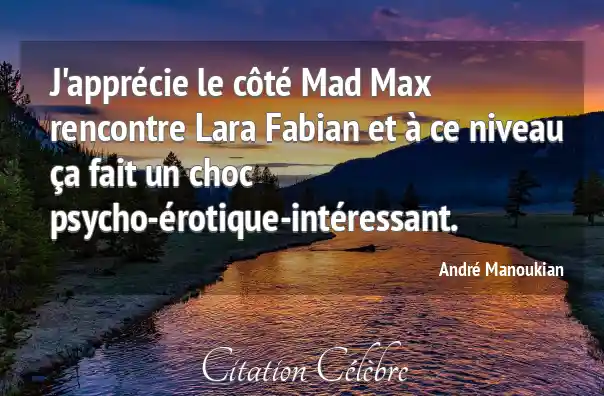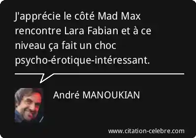 J'apprécie le côté Mad Max rencontre Lara Fabian et à ce niveau ça fait un choc psycho-érotique-intéressant.