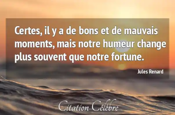 Certes, il y a de bons et de mauvais moments, mais notre humeur change plus souvent que notre fortune.
