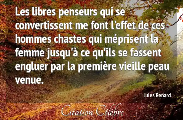 Les libres penseurs qui se convertissent me font l'effet de ces hommes chastes qui méprisent la femme jusqu'à ce qu'ils se fassent engluer par la première vieille peau venue.