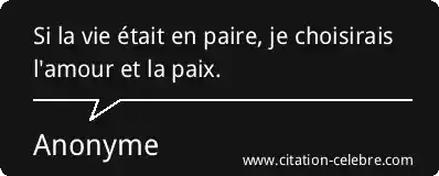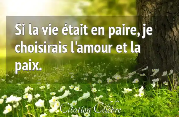 Si la vie était en paire, je choisirais l'amour et la paix.