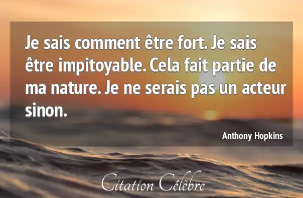 Je sais comment être fort. Je sais être impitoyable. Cela fait partie de ma nature. Je ne serais pas un acteur sinon.