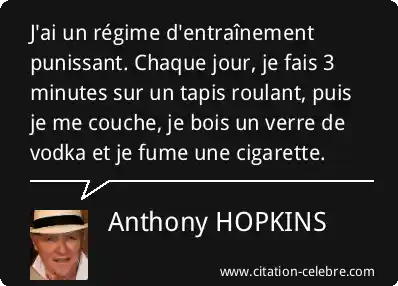 J'ai un régime d'entraînement punissant. Chaque jour, je fais 3 minutes sur un tapis roulant, puis je me couche, je bois un verre de vodka et je fume une cigarette.