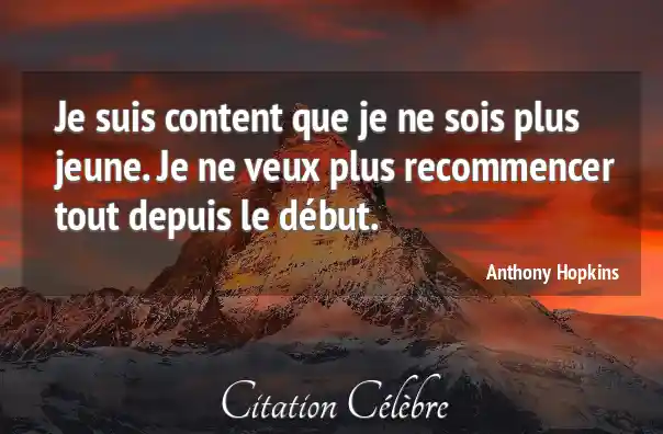 Je suis content que je ne sois plus jeune. Je ne veux plus recommencer tout depuis le début.