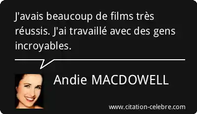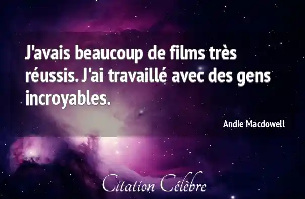 J'avais beaucoup de films très réussis. J'ai travaillé avec des gens incroyables.