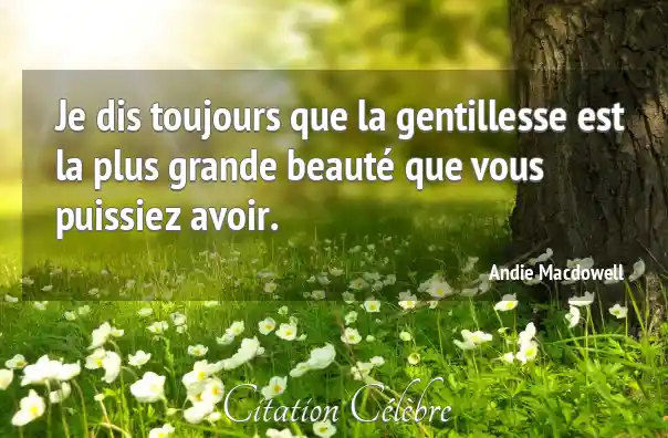 Je dis toujours que la gentillesse est la plus grande beauté que vous puissiez avoir.