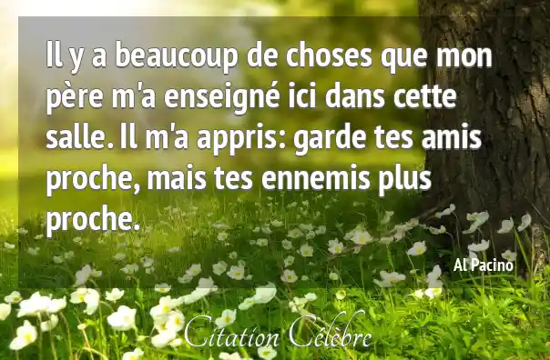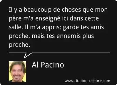 Il y a beaucoup de choses que mon père m'a enseigné ici dans cette salle. Il m'a appris: garde tes amis proche, mais tes ennemis plus proche.