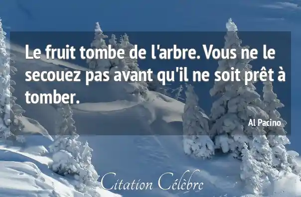 Le fruit tombe de l'arbre. Vous ne le secouez pas avant qu'il ne soit prêt à tomber.