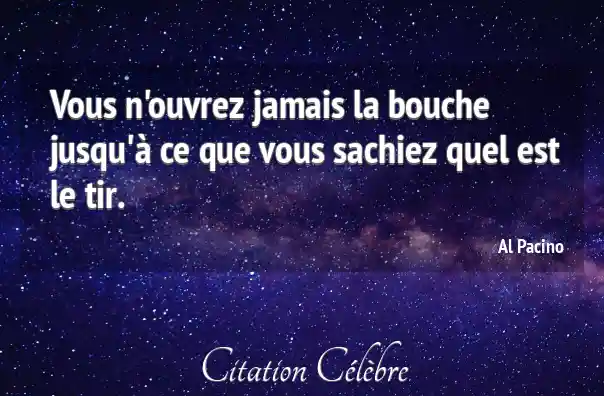 Vous n'ouvrez jamais la bouche jusqu'à ce que vous sachiez quel est le tir.