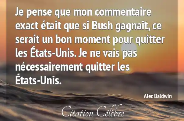Je pense que mon commentaire exact était que si Bush gagnait, ce serait un bon moment pour quitter les États-Unis. Je ne vais pas nécessairement quitter les États-Unis.