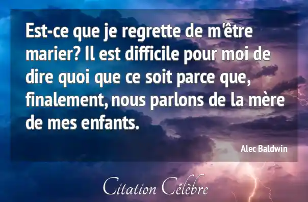 Est-ce que je regrette de m'être marier? Il est difficile pour moi de dire quoi que ce soit parce que, finalement, nous parlons de la mère de mes enfants.