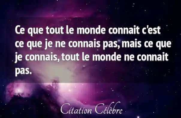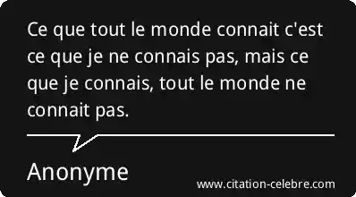 Ce que tout le monde connait c'est ce que je ne connais pas, mais ce que je connais, tout le monde ne connait pas.