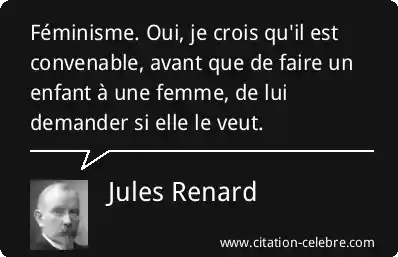 Féminisme. Oui, je crois qu'il est convenable, avant que de faire un enfant à une femme, de lui demander si elle le veut.