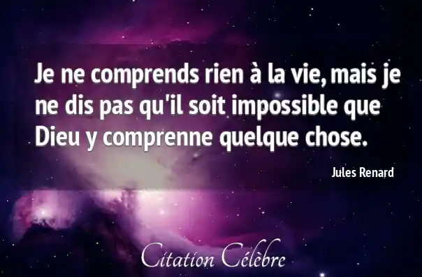 Je ne comprends rien à la vie, mais je ne dis pas qu'il soit impossible que Dieu y comprenne quelque chose.