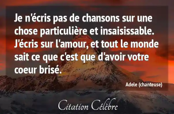 Je n'écris pas de chansons sur une chose particulière et insaisissable. J'écris sur l'amour, et tout le monde sait ce que c'est que d'avoir votre coeur brisé.