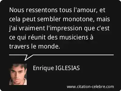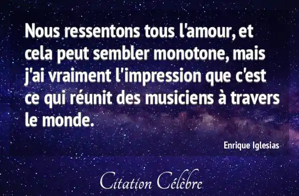 Nous ressentons tous l'amour, et cela peut sembler monotone, mais j'ai vraiment l'impression que c'est ce qui réunit des musiciens à travers le monde.