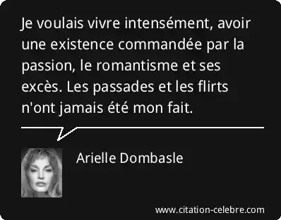 Je voulais vivre intensément, avoir une existence commandée par la passion, le romantisme et ses excès. Les passades et les flirts n'ont jamais été mon fait.