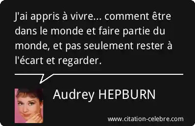 J'ai appris à vivre... comment être dans le monde et faire partie du monde, et pas seulement rester à l'écart et regarder.