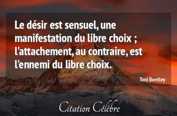 Le désir est sensuel, une manifestation du libre choix ; l'attachement, au contraire, est l'ennemi du libre choix.