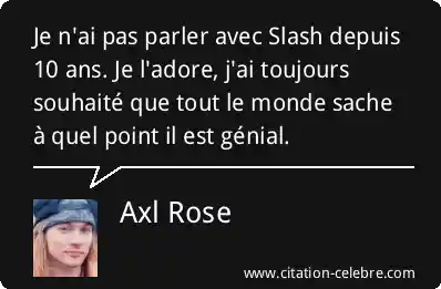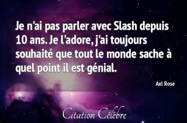 Je n'ai pas parler avec Slash depuis 10 ans. Je l'adore, j'ai toujours souhaité que tout le monde sache à quel point il est génial.