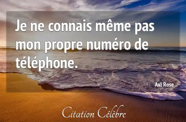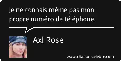 Citation Axl Rose mon : Je ne connais même pas mon propre numéro de téléphone....