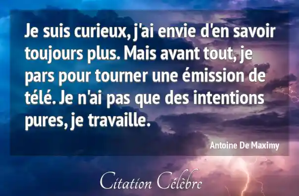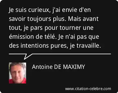 Je suis curieux, j'ai envie d'en savoir toujours plus. Mais avant tout, je pars pour tourner une émission de télé. Je n'ai pas que des intentions pures, je travaille.