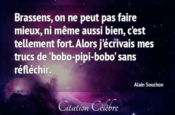 Brassens, on ne peut pas faire mieux, ni même aussi bien, c'est tellement fort. Alors j'écrivais mes trucs de 'bobo-pipi-bobo' sans réfléchir.