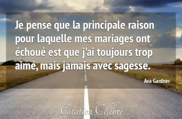 Je pense que la principale raison pour laquelle mes mariages ont échoué est que j'ai toujours trop aimé, mais jamais avec sagesse.