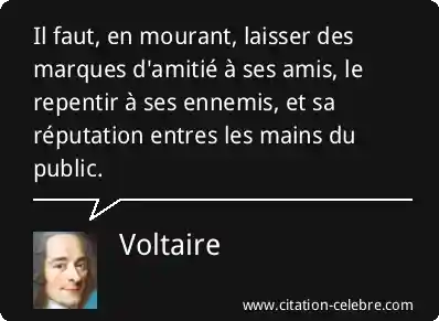 Il faut, en mourant, laisser des marques d'amitié à ses amis, le repentir à ses ennemis, et sa réputation entres les mains du public.