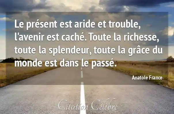 Le présent est aride et trouble, l'avenir est caché. Toute la richesse, toute la splendeur, toute la grâce du monde est dans le passé.