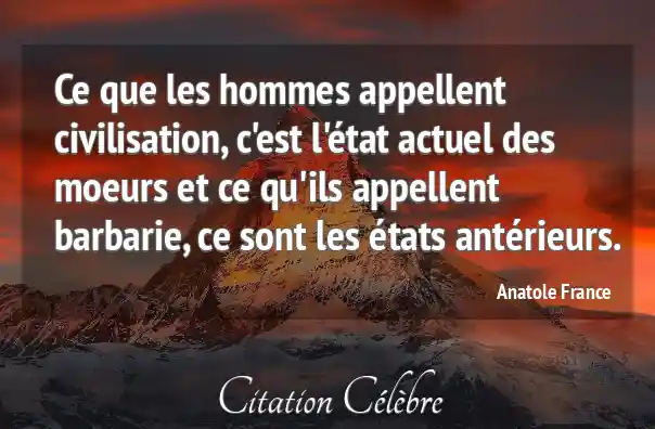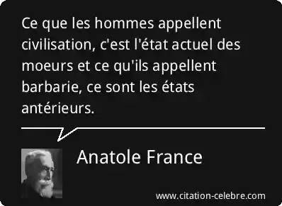Ce que les hommes appellent civilisation, c'est l'état actuel des moeurs et ce qu'ils appellent barbarie, ce sont les états antérieurs.