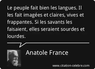 Le peuple fait bien les langues. Il les fait imagées et claires, vives et frappantes. Si les savants les faisaient, elles seraient sourdes et lourdes.